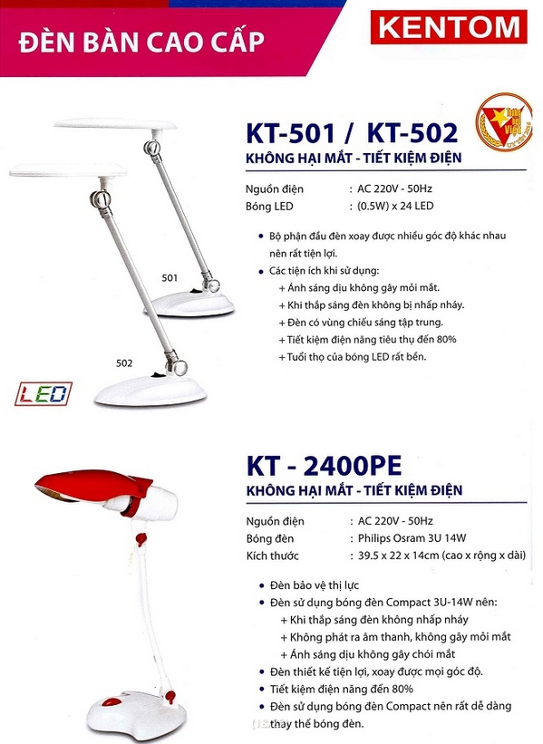Catalogue, bảng giá đèn Kentom mới nhất 2020 bằng hình ảnh dưới đây