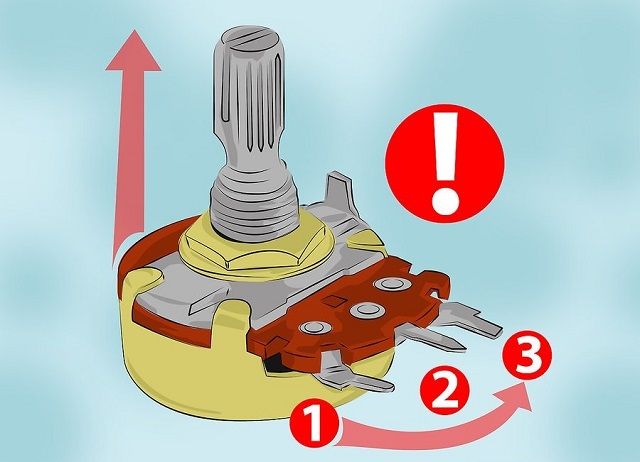 - Xác định 3 chân của chiết áp sau đó đặt núm vặn hướng lên trần nhà. 3 chân sẽ đặt quay về phía bạn. Lúc này bạn sẽ coi như 1-2-3 từ trái qua phải là vị trí của chân chiết áp.